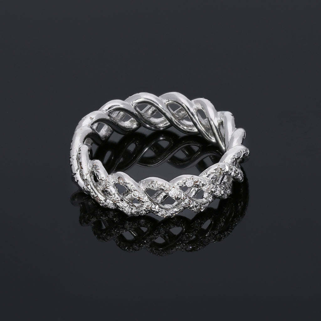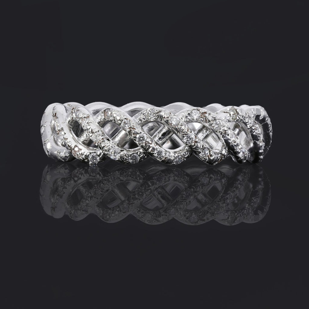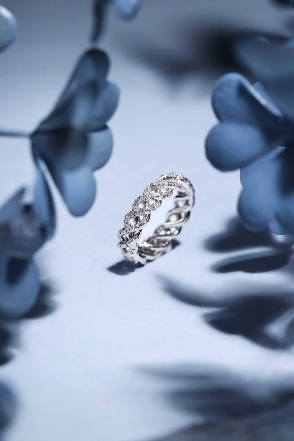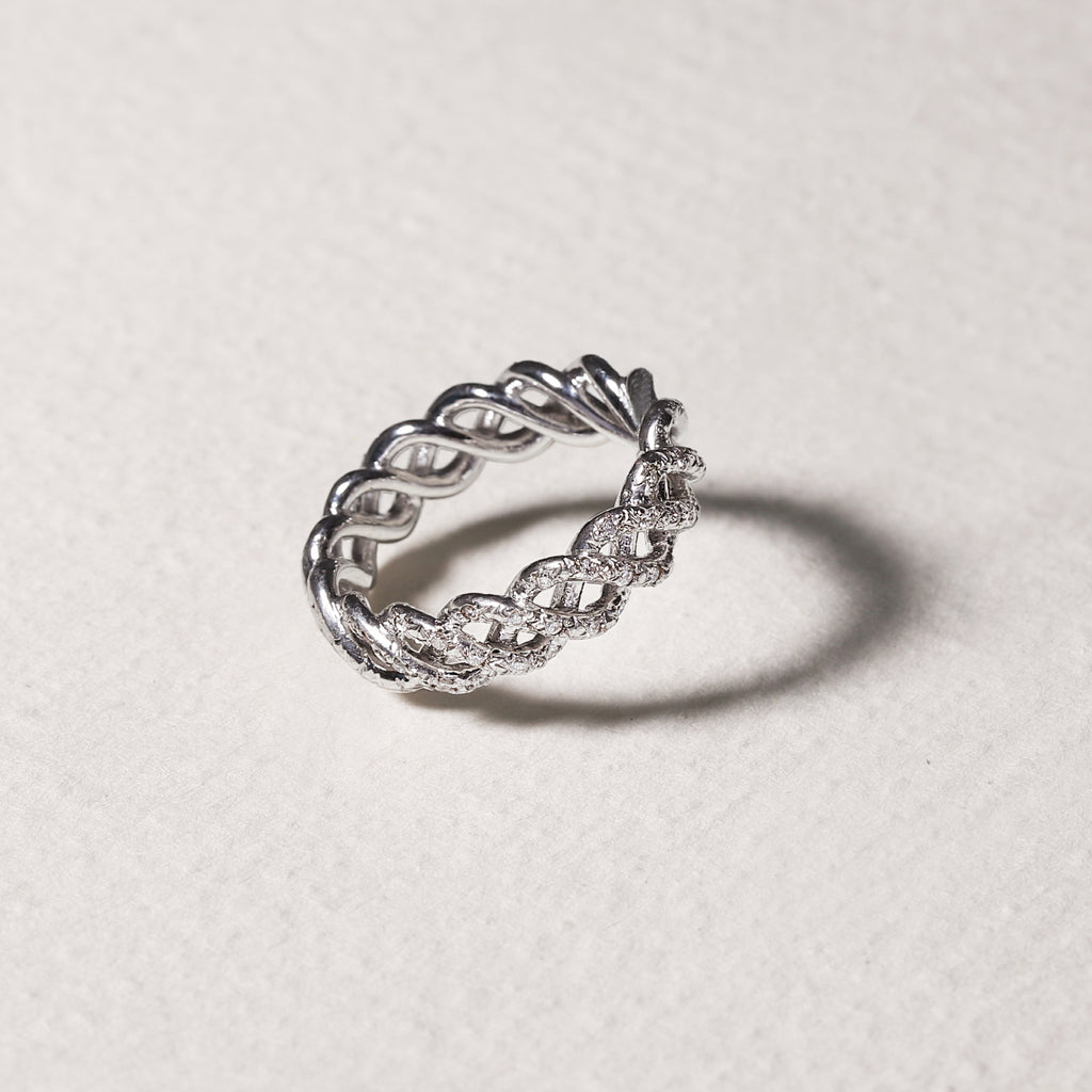 An ethereal braid, delicately laced together in Rhodium-plated 20 Kt gold.
