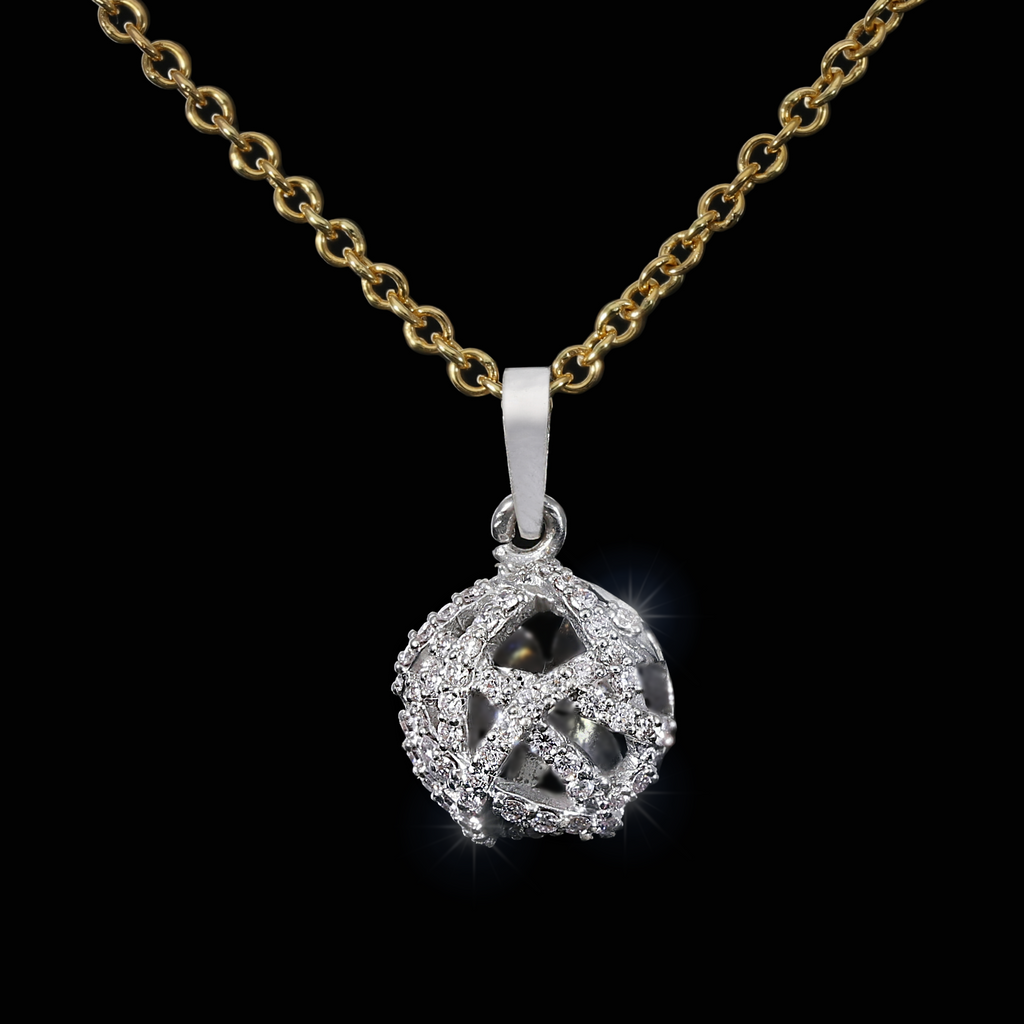 A miniature orb of diamonds, the Luna Pendant showcases a stylized rendition of the glorious moon.