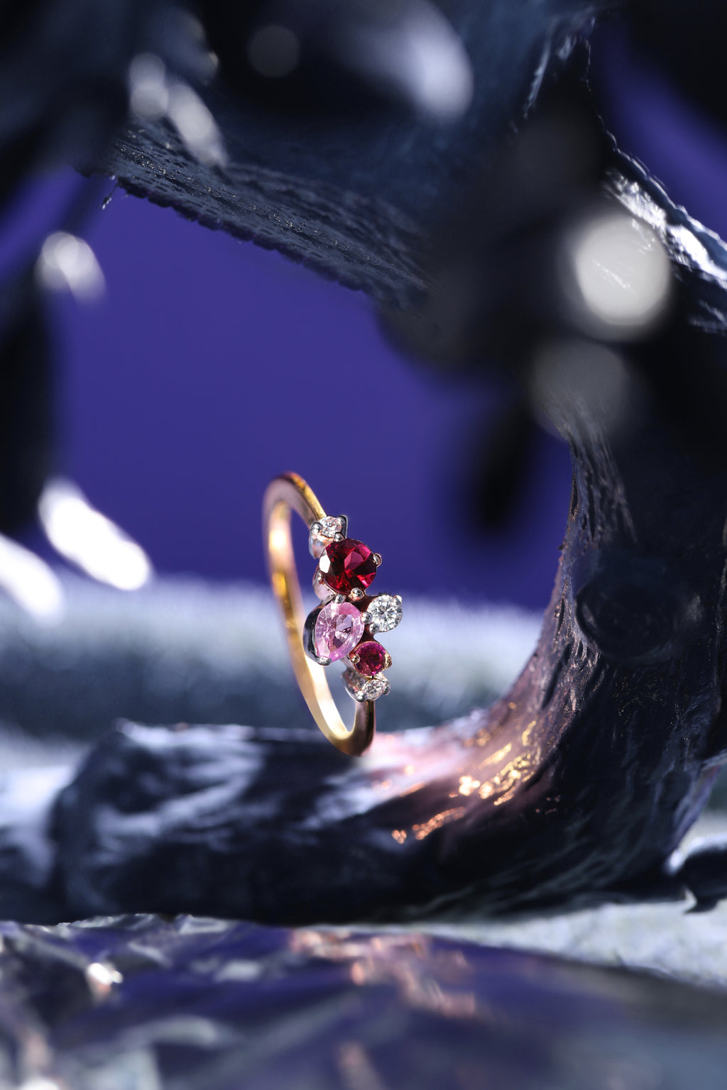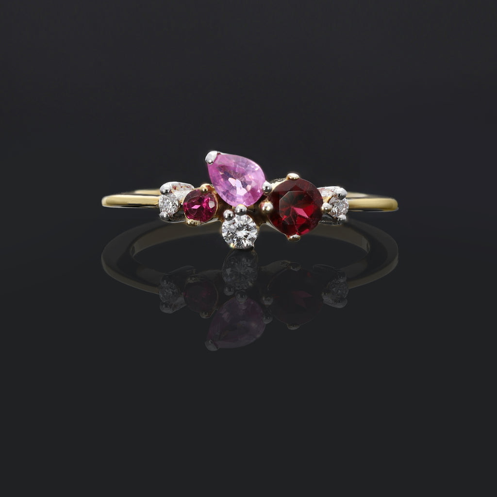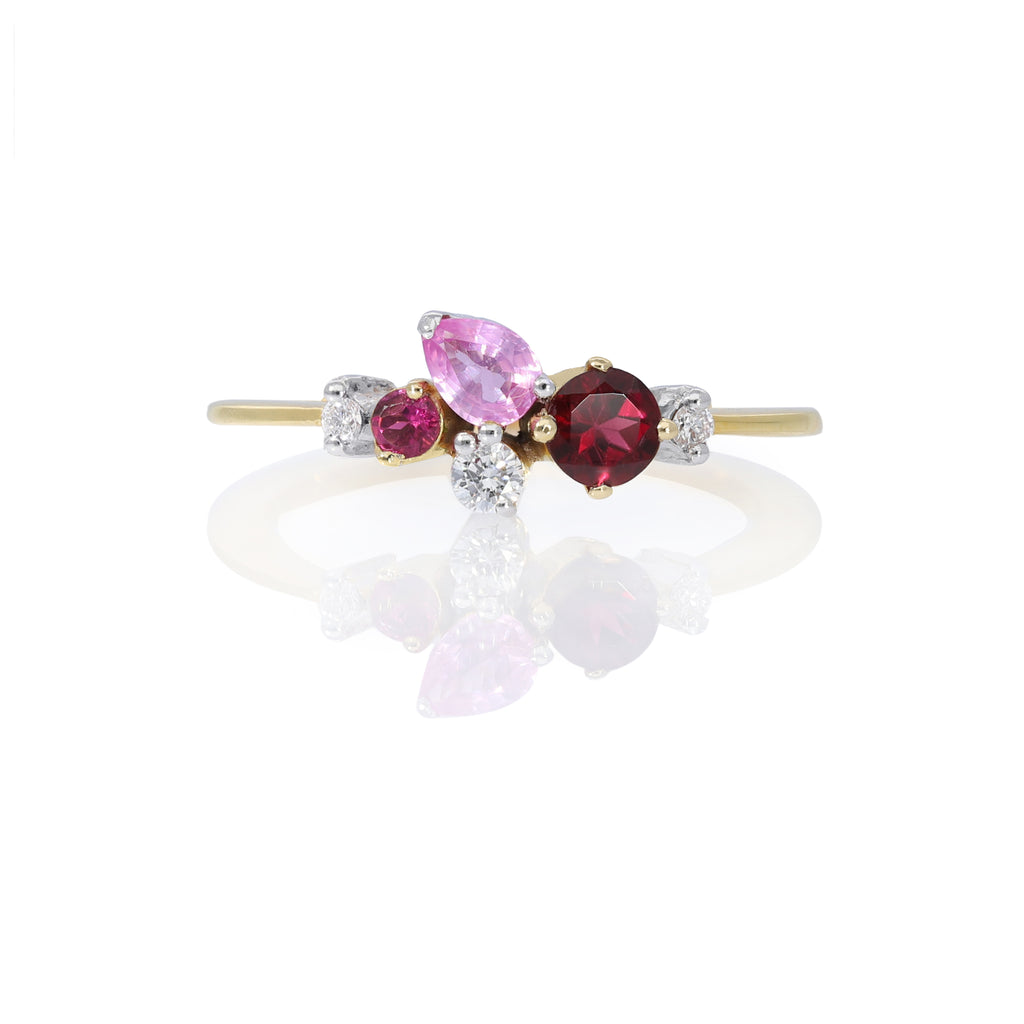 The horizon ring is a celestial cluster of Tourmalines, Multi-coloured Sapphires and Diamonds orbiting the gold ring — an endearing image of community and comfort.