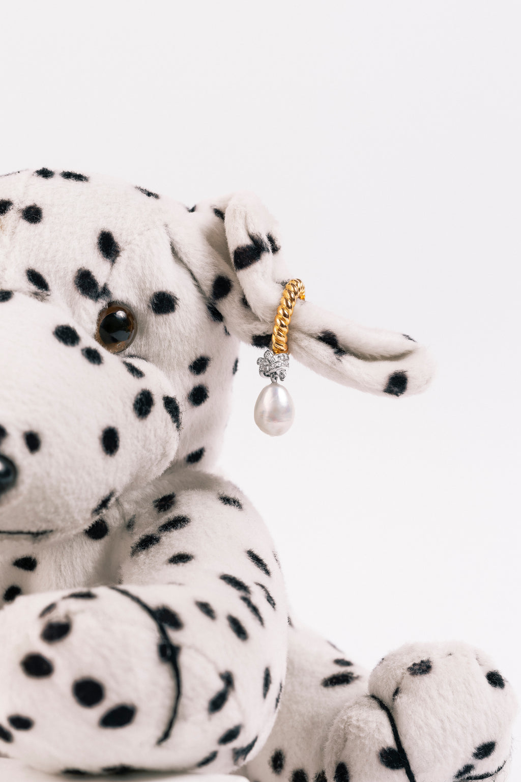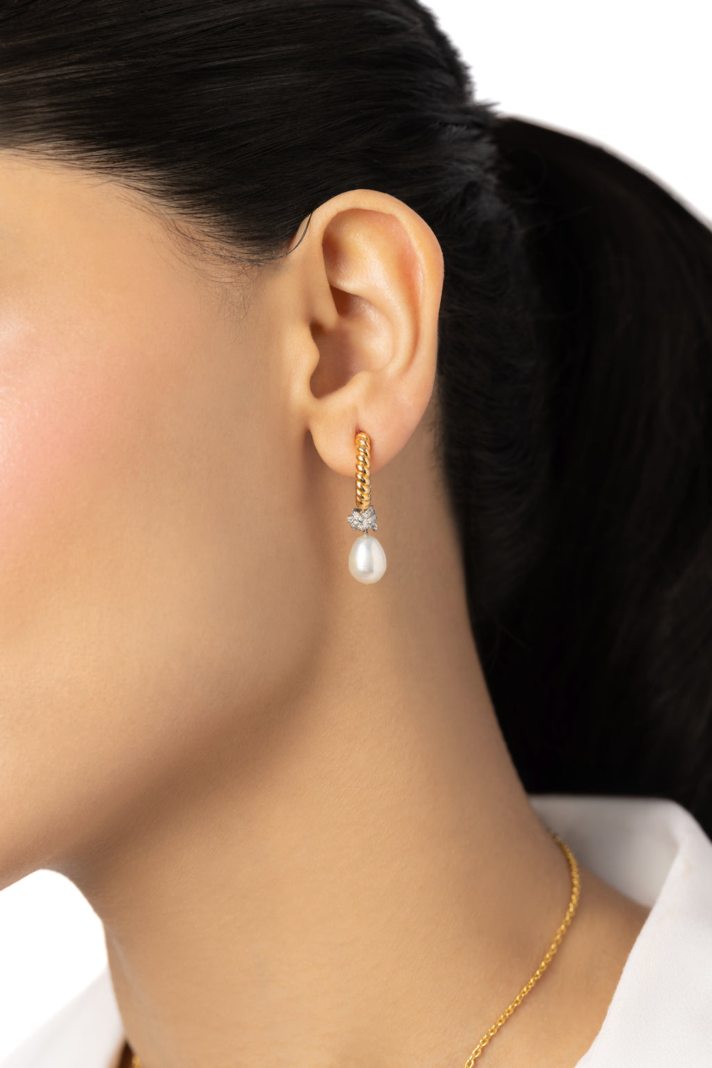 A bold twisted-gold hoop meets a diamond-studded knot, finished with a luminous pearl drop. Elegant, timeless, and effortlessly versatile — a classic with a modern twist.